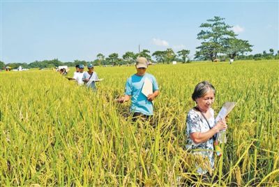 中菲农业技术中心第三期技术合作项目在菲律宾打拉省设立示范点,推广杂交水稻高产栽培及制种技术。图为当地农户积极参加“高产栽培技术示范农田日”活动。