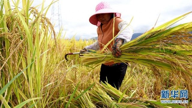收割现场(摄于9月15日)。新华网发(蒙自市融媒体中心供图)